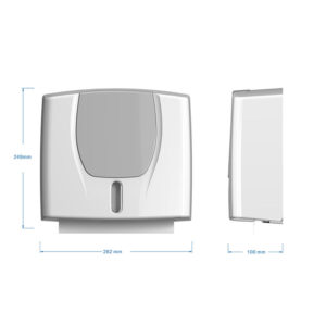 The Compact Multifold Hand Towel Dispenser is designed for Z-fold hand towels. Its slim and elegant design allows it to seamlessly fit into various environments.